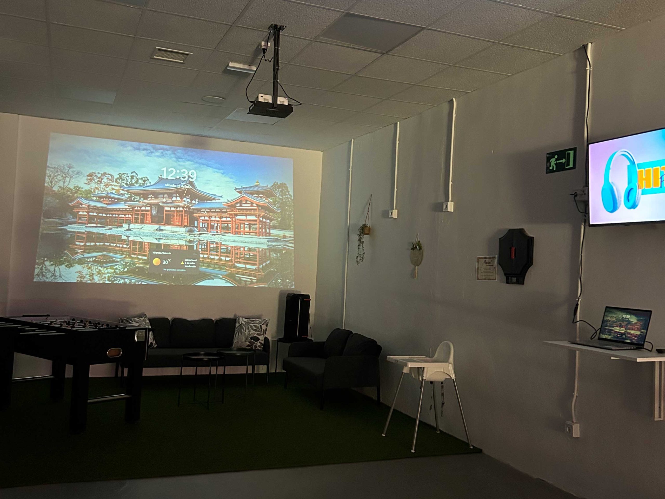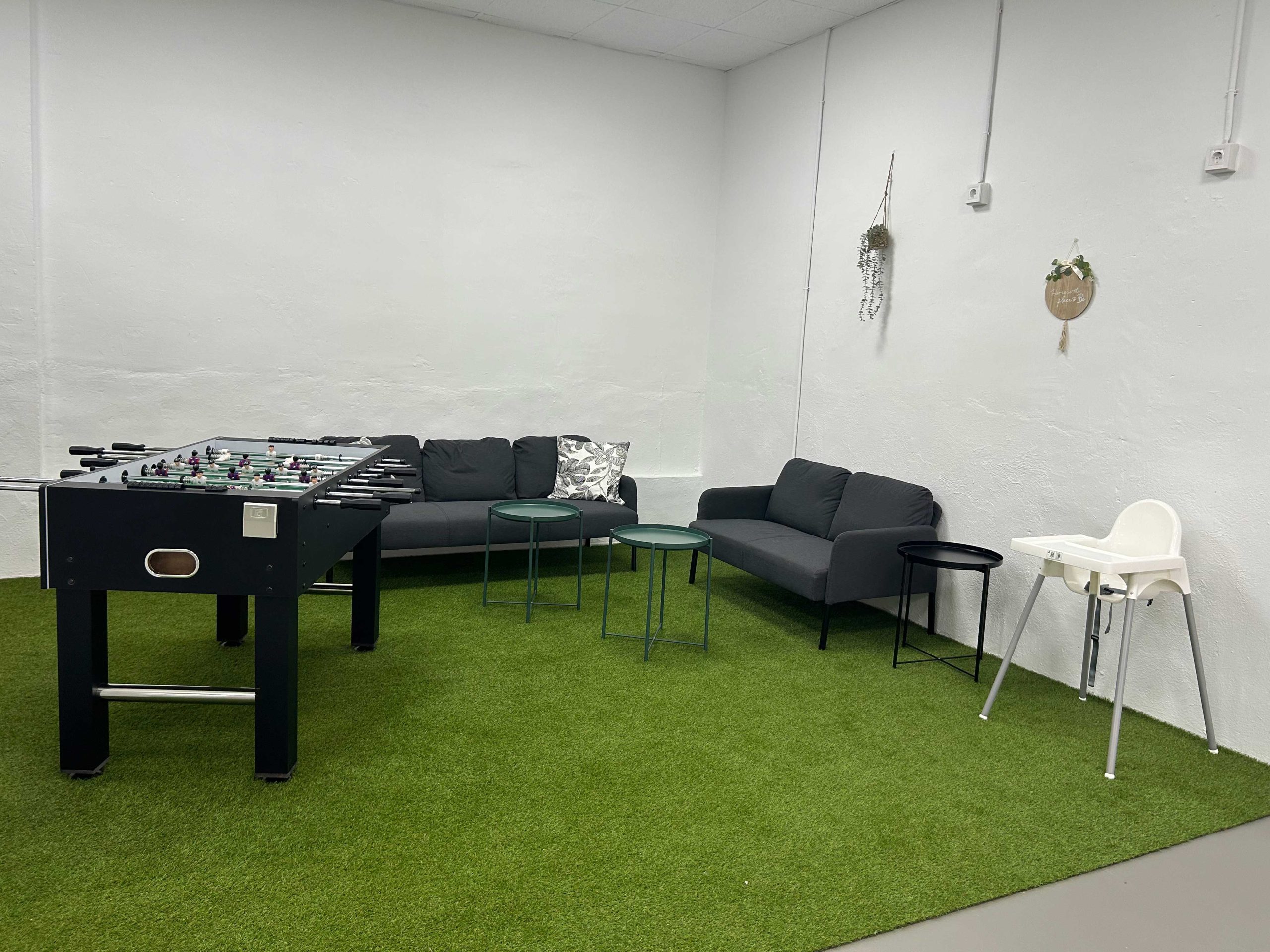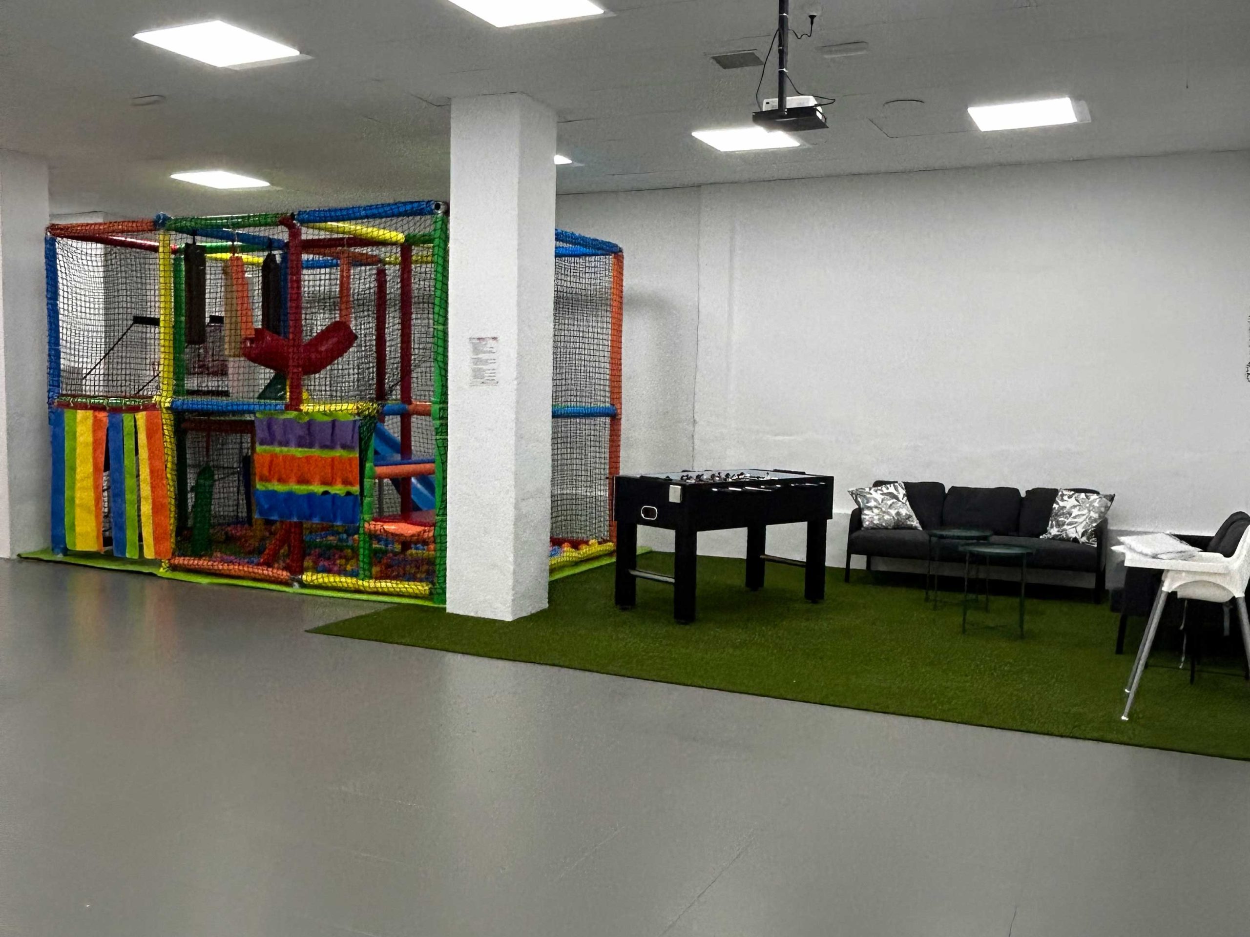 Contamos con un espacio amplio y luminoso, con un aforo máximo de 80 personas, equipado con todo lo necesario para que tu evento sea un éxito: mobiliario modular, proyector, altavoz bluetooth, múltiples tomas de corriente, conexión Wi-Fi, área de catering, zona de juegos infantiles, zona de juegos de adultos, televisión…